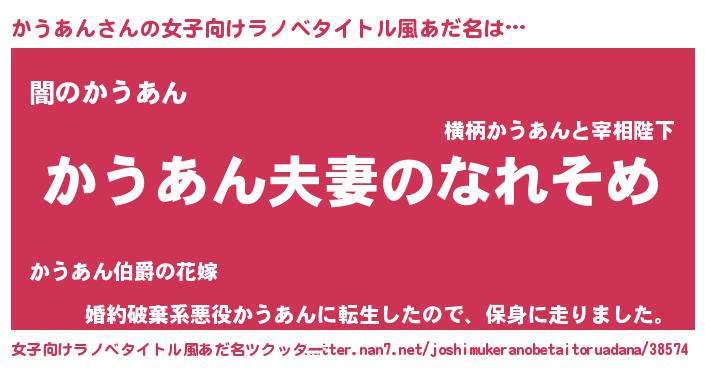 | ヒーロー風カッコイイあだ名 | 『正義の使者かうあん』『ネオカウアン』 |