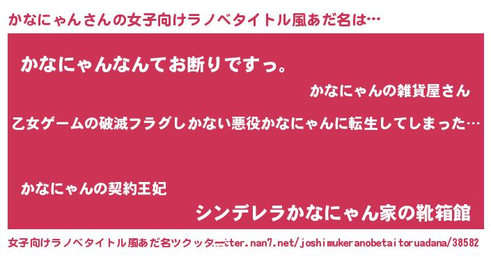| 男性向けラノベタイトル風あだ名 | 『魔弾の王とかなにゃん』 |