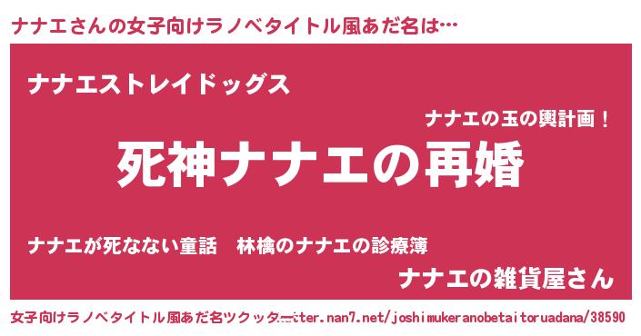 | 男性向けラノベタイトル風あだ名 | 『ノーゲーム・ノーナナエ』 |