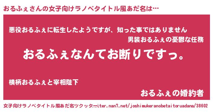 | 男性向けラノベタイトル風あだ名 | 『魔法科高校のおるふぇ』 |
