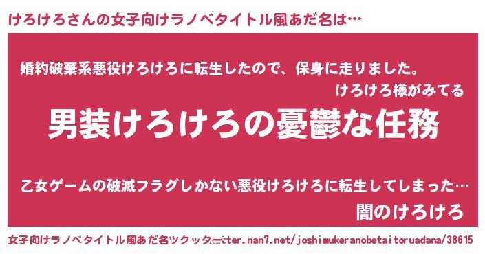 | 男性向けラノベタイトル風あだ名 | 『うちのけろけろが世界を掌握している!』 |