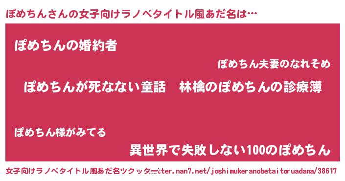 男性向けラノベタイトル風あだ名 | 『魔弾の王とぽめちん』 |