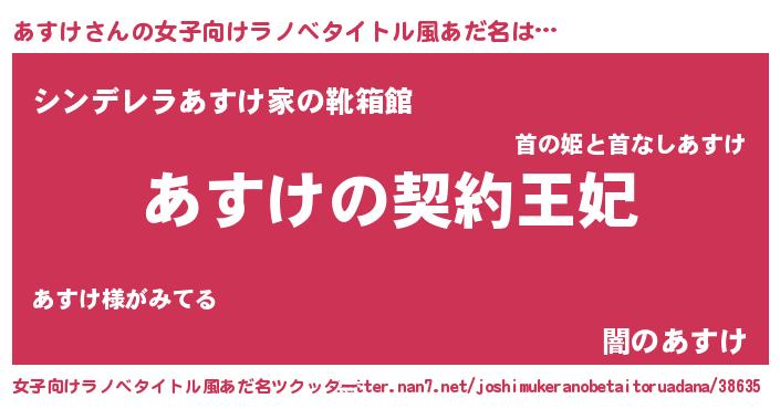 | 男性向けラノベタイトル風あだ名 | 『あすけという概念が存在しない退屈な世界 』 |