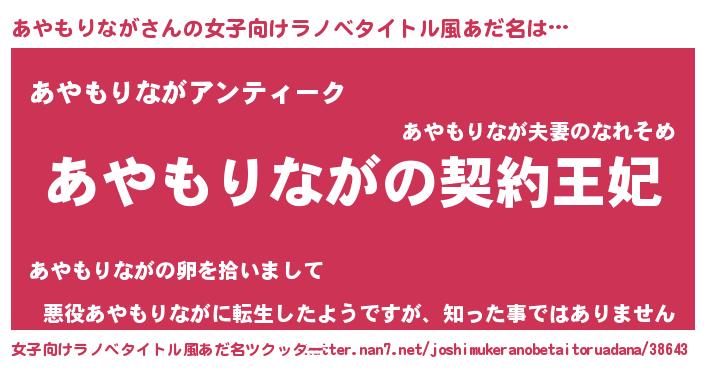| 男性向けラノベタイトル風あだ名 | 『あやもりながという概念が存在しない退屈な世界 』 |
