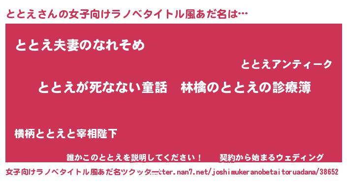 | 意味不明あだ名 | 『住所不定無職ととえ(8歳)』『自称ととえ』 |