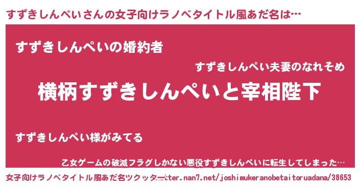| 男性向けラノベタイトル風あだ名 | 『すずきしんぺいに滅ぼされるだけの簡単なお仕事です』 |