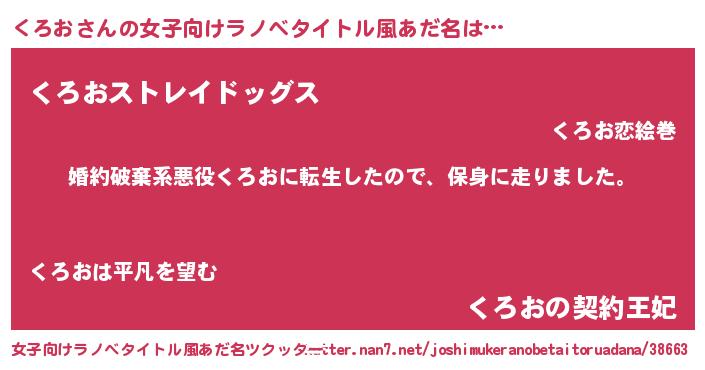 | ヘコむあだ名 | 『くろお(笑)』『くろを』『豆乳』 |