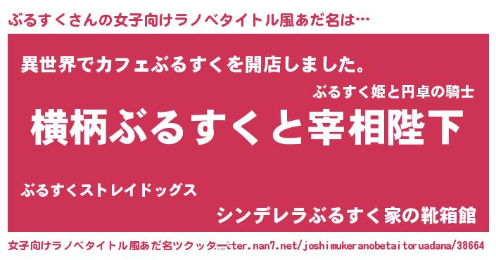 | 男性向けラノベタイトル風あだ名 | 『ぶるすくに滅ぼされるだけの簡単なお仕事です』 |