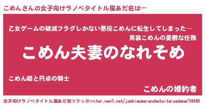| 男性向けラノベタイトル風あだ名 | 『おまえをオタクにしてやるから、俺をこめんにしてくれ! 』 |