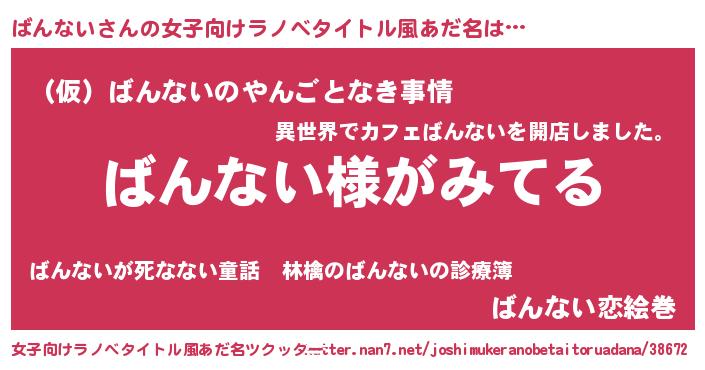 | 男性向けラノベタイトル風あだ名 | 『ばんないの嫁は女の子じゃないと思った?』 |
