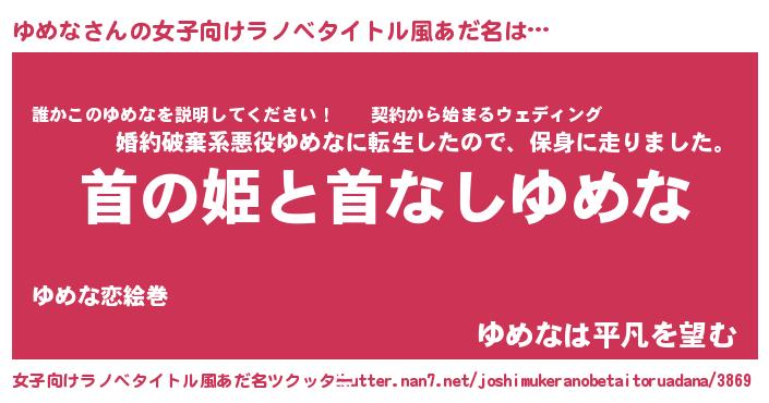 | 胡散臭い通販商品みたいなあだ名 | 『必ず成功するブレスレット…その名も「ゆめな」』 |