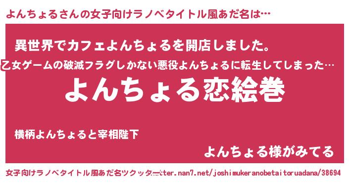 | 男性向けラノベタイトル風あだ名 | 『ノーゲーム・ノーヨンチョル』 |
