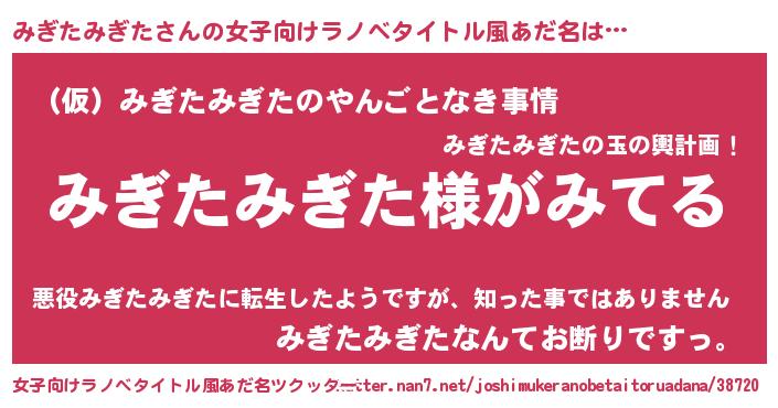 | 男性向けラノベタイトル風あだ名 | 『みぎたみぎたの嫁は女の子じゃないと思った?』 |