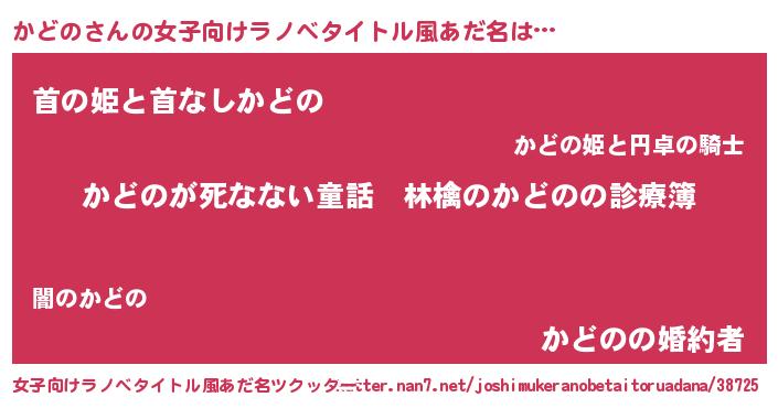 | ヒーロー風カッコイイあだ名 | 『仮面カドダー』『ウルトラかどのマン』 |