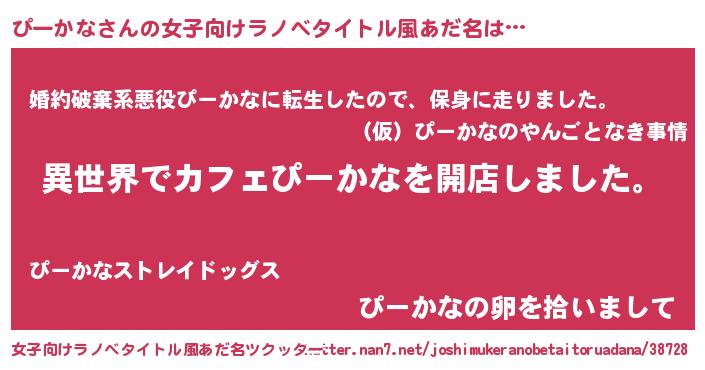 | 男性向けラノベタイトル風あだ名 | 『誰もが恐れるあのぴーかなが、ぼくの専属メイドになるようです。』 |
