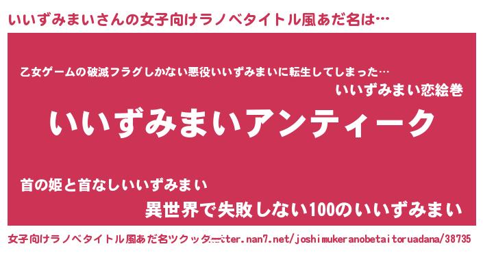 | 意味不明あだ名 | 『自称いいずみまい』 |