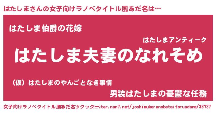 | ファンタジー風あだ名 | 『クインハット』『エターナルハタシマー』 |