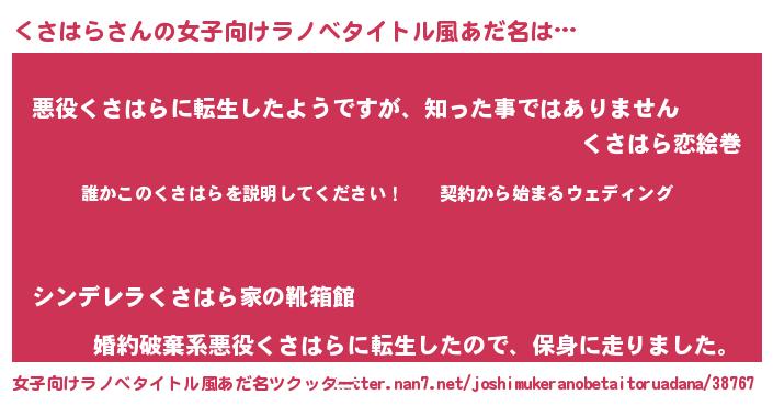 | 男性向けラノベタイトル風あだ名 | 『クサハラアートオンライン』 |
