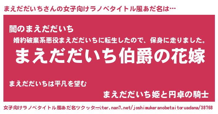| ファンタジー風あだ名 | 『エターナルマエダダイチー』 |