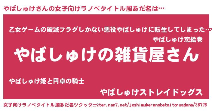 | ファンタジー風あだ名 | 『エターナルヤバシュケー』『ゼヤバトゥ』 |