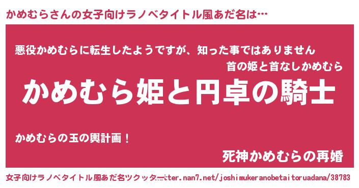| 男性向けラノベタイトル風あだ名 | 『カメムラアートオンライン』 |