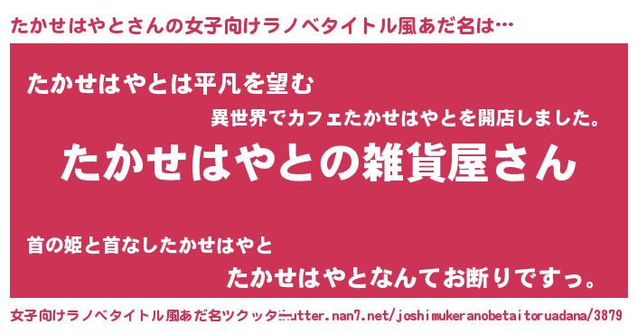 | 胡散臭い通販商品みたいなあだ名 | 『幸せが訪れる高級そうな絵画…その名も「たかせはやと」』 |