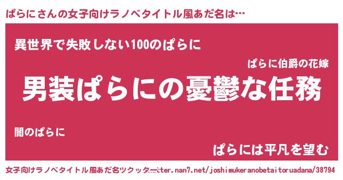 | 男性向けラノベタイトル風あだ名 | 『うちのぱらにが世界を掌握している!』 |
