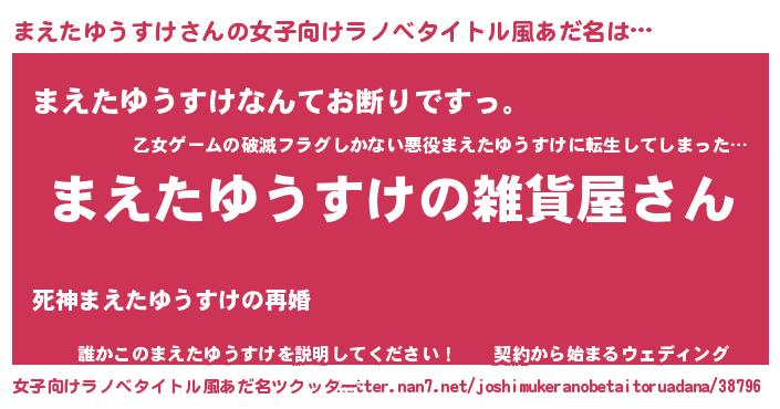 | 男性向けラノベタイトル風あだ名 | 『やはりまえたゆうすけの青春ラブコメはまちがっている 』 |