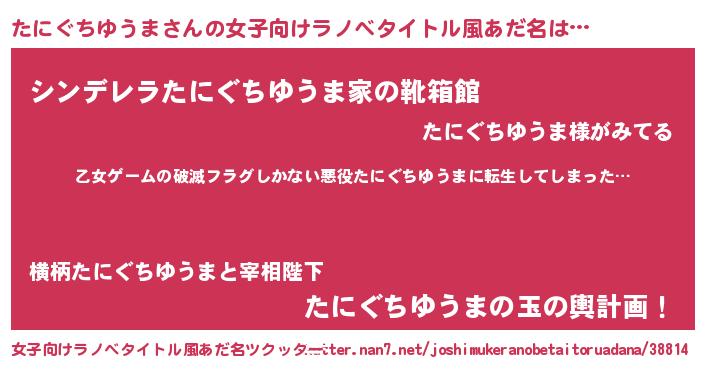 | 意味不明あだ名 | 『住所不定無職たにぐちゆうま(62歳)』 |