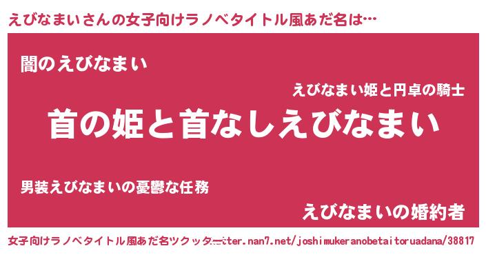 | 男性向けラノベタイトル風あだ名 | 『はたらくえびなまいさま!』 |