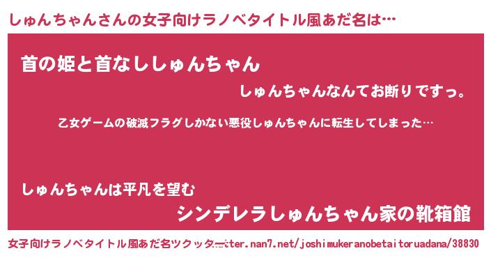 | 男性向けラノベタイトル風あだ名 | 『魔弾の王としゅんちゃん』 |