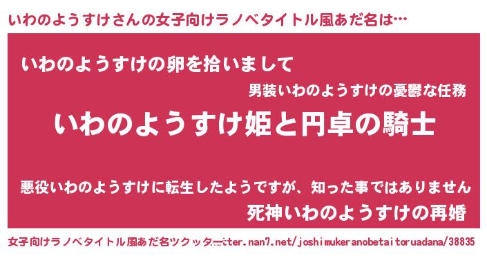 | 男性向けラノベタイトル風あだ名 | 『イワノヨウスケアートオンライン』 |