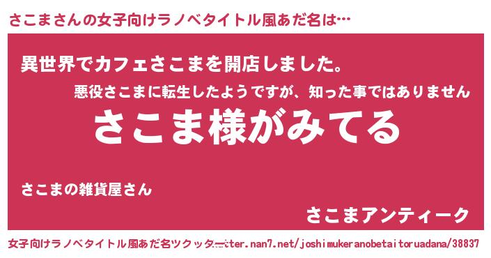 | 男性向けラノベタイトル風あだ名 | 『さこまの嫁は女の子じゃないと思った?』 |
