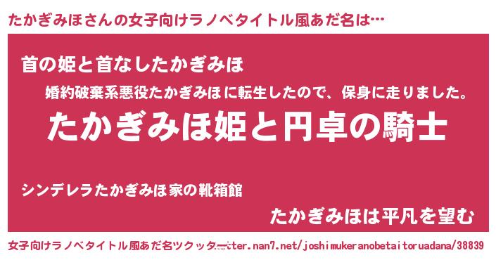 | 肩書あだ名 | 『たかぎみほ御曹司』『たかぎみほ中尉』 |