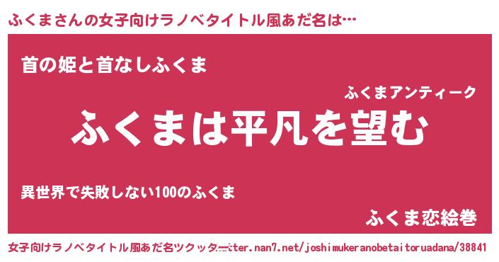 | 男性向けラノベタイトル風あだ名 | 『ダンジョンにふくまを求めるのは間違っているだろうか』 |