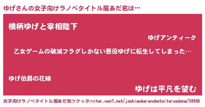 | 男性向けラノベタイトル風あだ名 | 『魔弾の王とゆげ』『魔法科高校のゆげ』 |