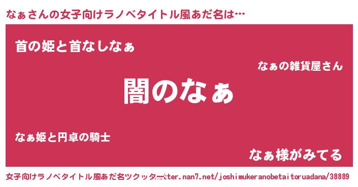 | 男性向けラノベタイトル風あだ名 | 『Re:なぁから始める異世界生活』 |