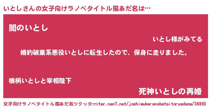 | 男性向けラノベタイトル風あだ名 | 『転生したらいとしだった件』 |