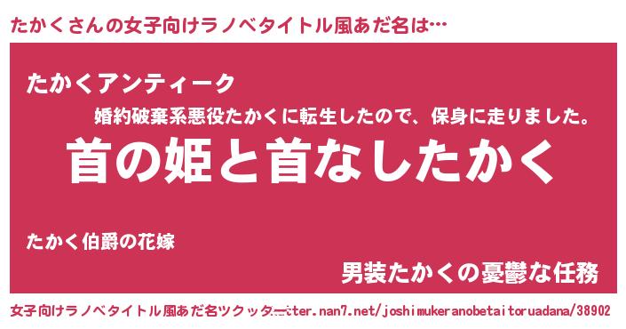 | 男性向けラノベタイトル風あだ名 | 『はたらくたかくさま!』 |