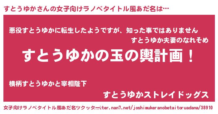 | 胡散臭い通販商品みたいなあだ名 | 『世界中を虜にした世界で10本だけ現存している希少なブランデー…その名も「すとうゆか」』 |