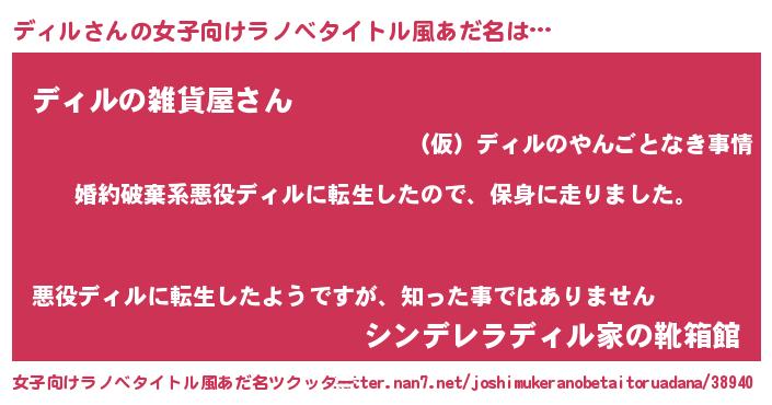 | 胡散臭い通販商品みたいなあだ名 | 『幸せが訪れる高級そうな絵画…その名も「ディル」』 |