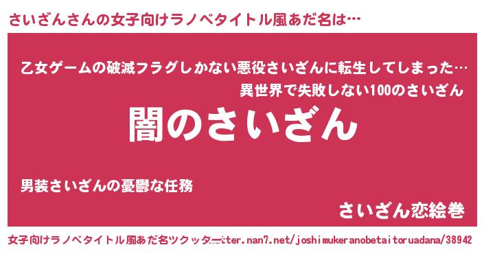 | 男性向けラノベタイトル風あだ名 | 『Re:さいざんから始める異世界生活』 |