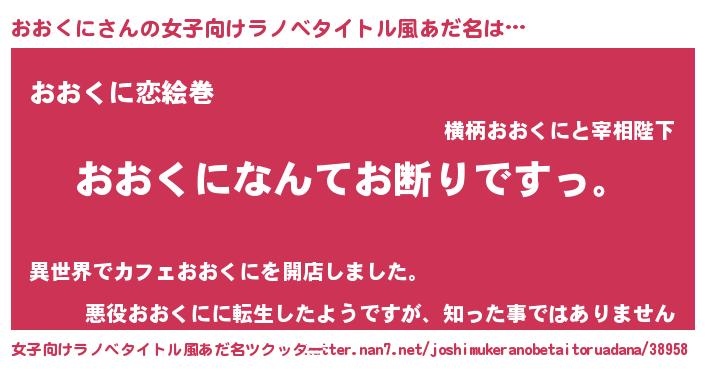 | 意味不明あだ名 | 『自称おおくに』『永久保存おおくに』 |