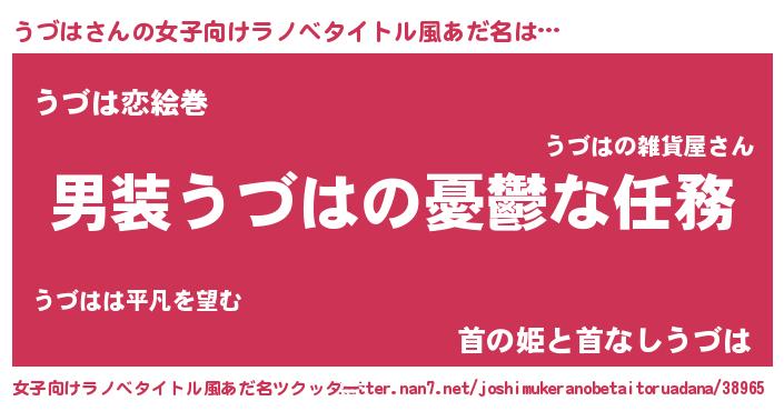 | 男性向けラノベタイトル風あだ名 | 『うちのうづはが世界を掌握している!』 |