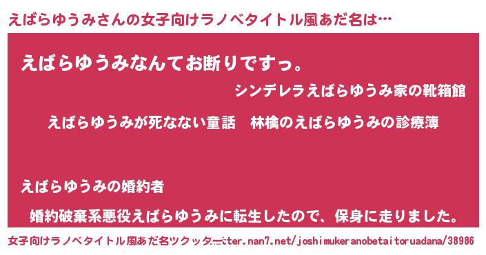 | 意味不明あだ名 | 『住所不定無職えばらゆうみ(6歳)』 |