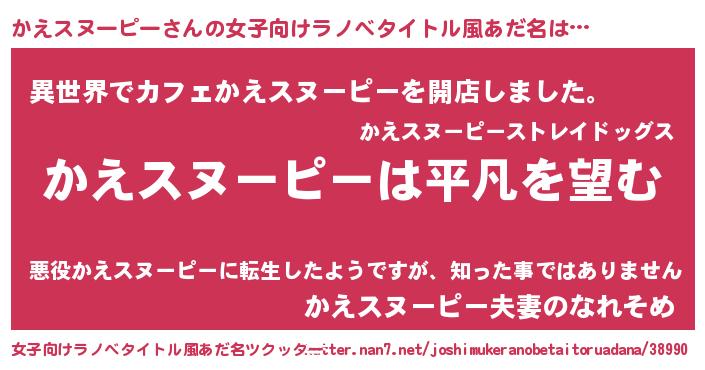 | 意味不明あだ名 | 『とにかく怪しいかえスヌーピー』 |
