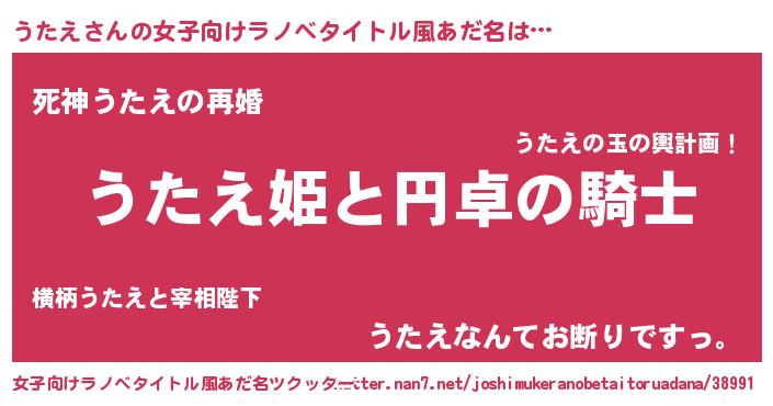 | 意味不明あだ名 | 『ペロリンうたえ』『自称うたえ』 |