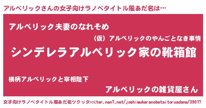 | 男性向けラノベタイトル風あだ名 | 『冴えないアルベリックの育てかた』 |