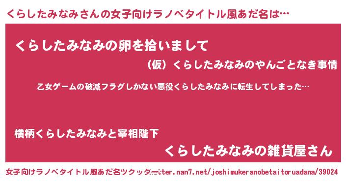 | 欧米人風あだ名 | 『ダレノガレくらしたみなみ』 |