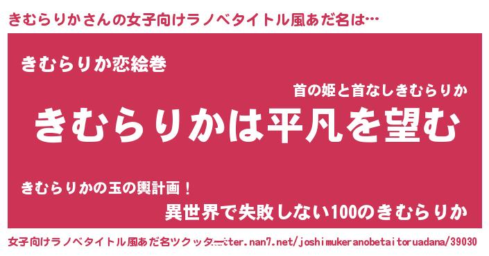 | 男性向けラノベタイトル風あだ名 | 『ダンジョンにきむらりかを求めるのは間違っているだろうか』 |